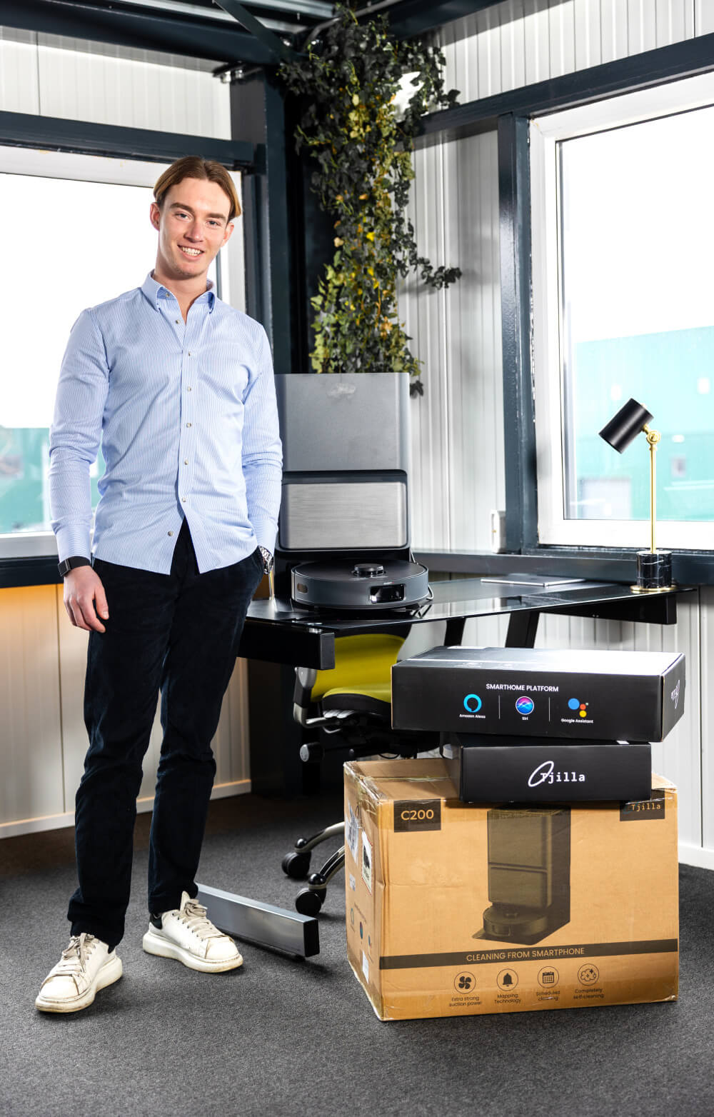 Hij begon met kleine handeltjes, is gek op technologie en dingen perfectioneren. Hidde Kamerhuis (24) uit Vriezenveen bouwt met Tjilla aan een Nederlands merk in robotstofzuigers. Of je nou een voetbalkantine schoon wilt houden na een druk weekend, een groot kantoorpand elke ochtend fris wilt openen of gewoon thuis minder wilt stofzuigen: bij Tjilla kun je terecht.