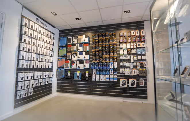 Met ‘we’ doelt Brian op zijn team van zeven medewerkers. “Dat zijn allemaal jonge mensen”, zegt Brian. Die generatie heeft de meeste feeling met de verkoop en reparatie van deze producten.” Dan doelt hij op smartphones en tablets, die in allerlei varianten in de winkel maar ook via de webshop te koop zijn. Daarnaast, voor een volledig aanbod, verkoopt hij talloze accessoires, zoals hoesjes, screenprotectors, oordopjes, koptelefoons, kabels, etcetera. “En niet te vergeten de quick chargers, draadloze laadstations, heel handig!”
