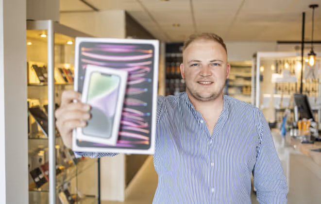 Brian haalt het overgrote deel van zijn omzet uit zakelijke klanten, en wat hem betreft mag dat nog meer worden. “Ik ga regelmatig naar zakelijke bijeenkomsten, denk hierbij aan bijeenkomsten van businessclubs. We zijn actief bezig met bedrijven te benaderen om onze naamsbekendheid onder die doelgroep nog verder te vergroten en om de behoeftes vanuit het bedrijfsleven nog beter in kaart te brengen. Het is voor ondernemers echt de moeite waard om klant van ons te worden. Dat heeft te maken met de technische kennis die wij in huis hebben, maar ook doordat we maatwerk-advies geven, écht met de klant meedenken en stabiele apparatuur snel kunnen leveren. En vooral niet te vergeten dat we problemen heel snel oplossen en ervoor zorgen dat de medewerkers bereikbaar blijven. Bovendien bieden we bijvoorbeeld aantrekkelijke bedrijfsbundels en gecombineerde abonnementen met meerdere sim-kaarten voor smartphones en tablets. Het is voor ondernemers echt een groot voordeel om door ons totaal ontzorgd te worden.” Waar Brian ook nog met nadruk op wil wijzen is dat zij duurzaamheid van groot belang vinden. “En we hebben ook een groot aanbod met refurbished iPhones en iPads! Dat zijn toestellen die met geavanceerde apparatuur op een aantal essentiële onderdelen worden gecontroleerd, gerenoveerd en schoongemaakt. Dan heb je voor een aantrekkelijke prijs goed werkende toestellen. En de levensduur wordt daarmee verlengd, wat natuurlijk ook mooi duurzaam is. Het is daarnaast goed om te weten dat wij gebruikte toestellen terug kopen van bedrijven en dan na een opknapbeurt weer verkopen. Ik snap dat consumenten, ook ondernemers, soms sceptisch staan tegenover refurbished toestellen, maar geloof me, iedereen kan ons ook daarin vertrouwen.” Brian sluit af met zijn belangrijkste boodschap aan ondernemers: “Alles, echt alles is bij Reparo goed geregeld. Bel me gerust voor een kennismaking in onze winkel of op kantoor. Ik zie er naar uit!”