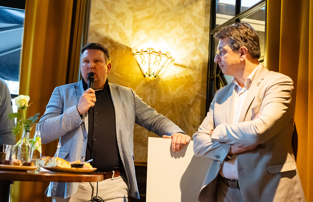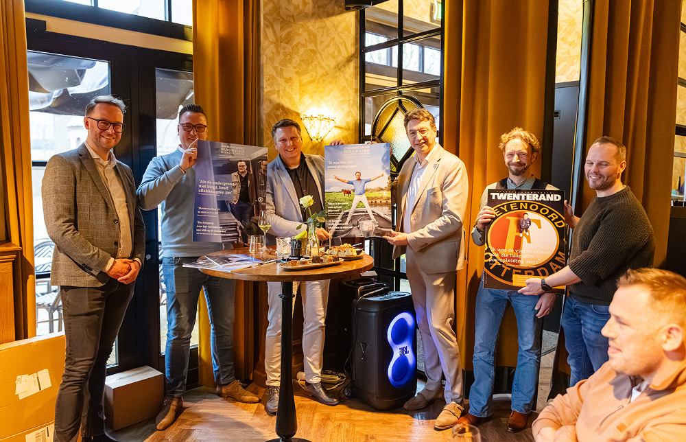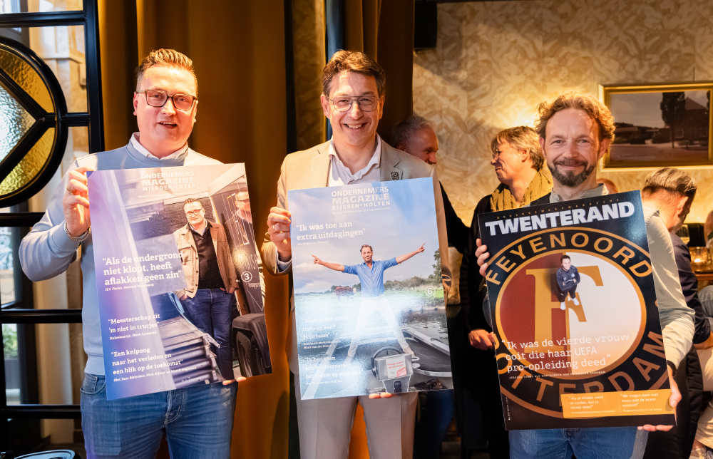 Het einde van het officiële gedeelte van deze mooie middag was de overhandiging van de eerste exemplaren met een mooie grote cover aan respectievelijk wethouder Bert Tijhof van Rijssen-Holten, Harrald Vosgezang van H.V. Finish uit Enter en Rik Pape, de kersverse wethouder van Twenterand. En toen was het uiteraard tijd voor een hapje en een drankje en natuurlijk gezelligheid en netwerken.